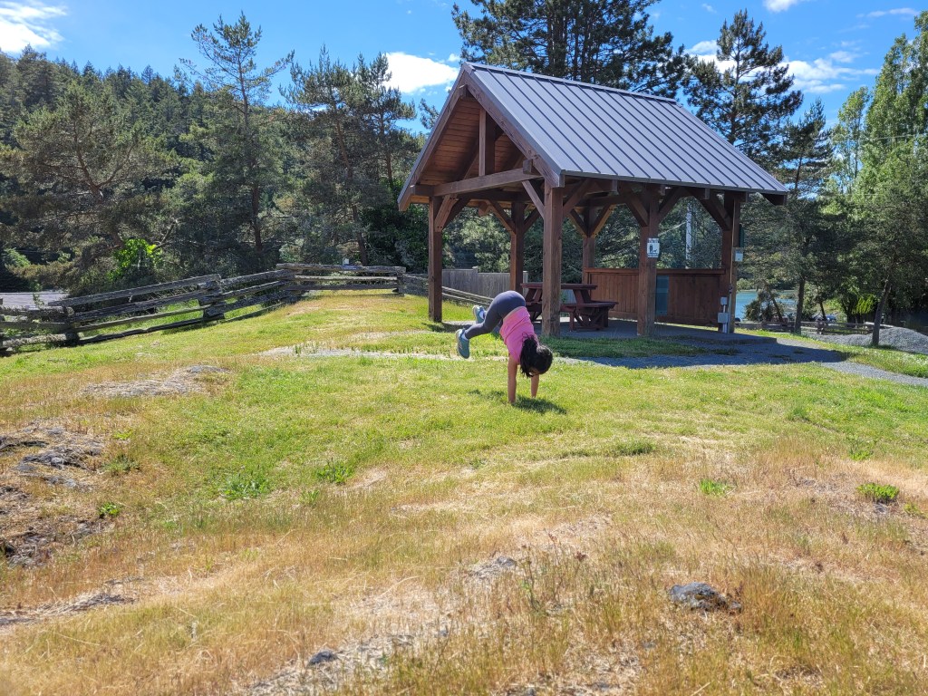 For kids, there isn’t really anything to mention for on site activities. We usually have our own set of toys for the kids to play with. The walk down the dock and hilltop overlooking the bay is quite nice and my daughter loved doing her gymnastics up there. The kids also enjoyed clamoring down the rocks to the water and explore the shore edge. The RV Resort is in close proximity to local trails and activities offsite though.