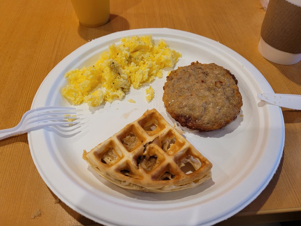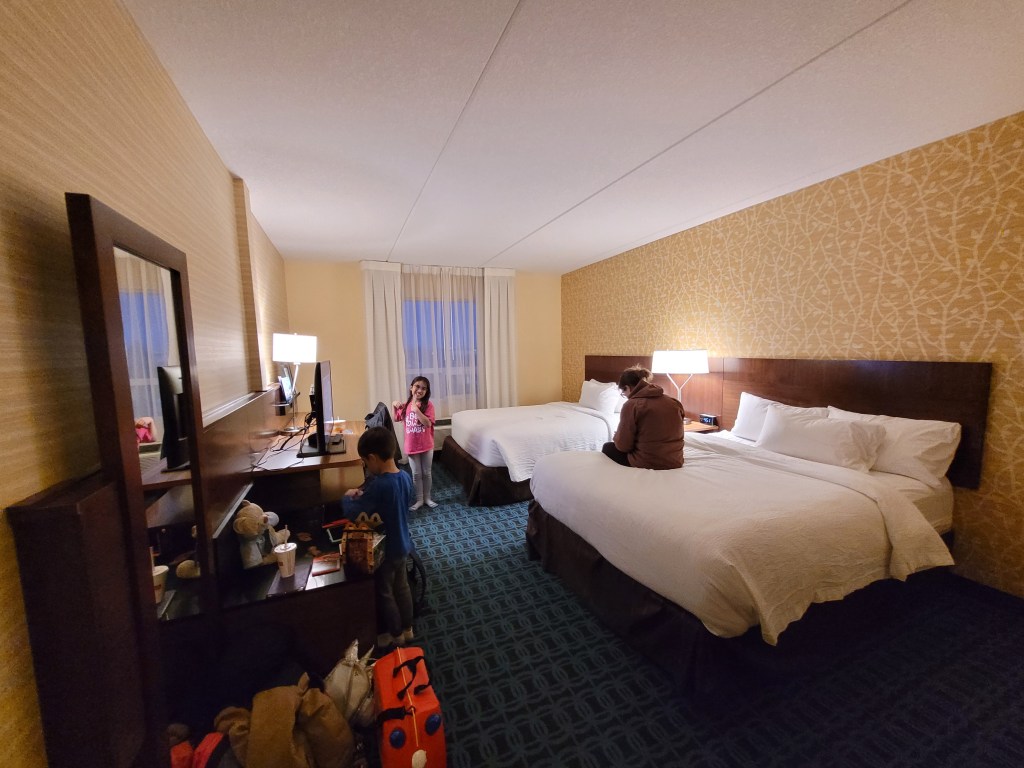 For November, we opted for the Fairfield Inn and Suites Edmonton North, another Marriott brand. We found this other limited-service brand to be a lot more comfortable than the Elements. Free breakfast is also included here, and the spread was quite nice with something delicious easily found by everyone. A decent pool with a water slide and a small fitness centre are also available here, although there is no hot tub; the kids greatly enjoyed the water slide. The room was nicely appointed, we were in a room with 2 queen-sized beds, a typical bathroom, and a microwave was available. Having the microwave is nice with the kids so we can warm up milk for the little guy in the evenings.