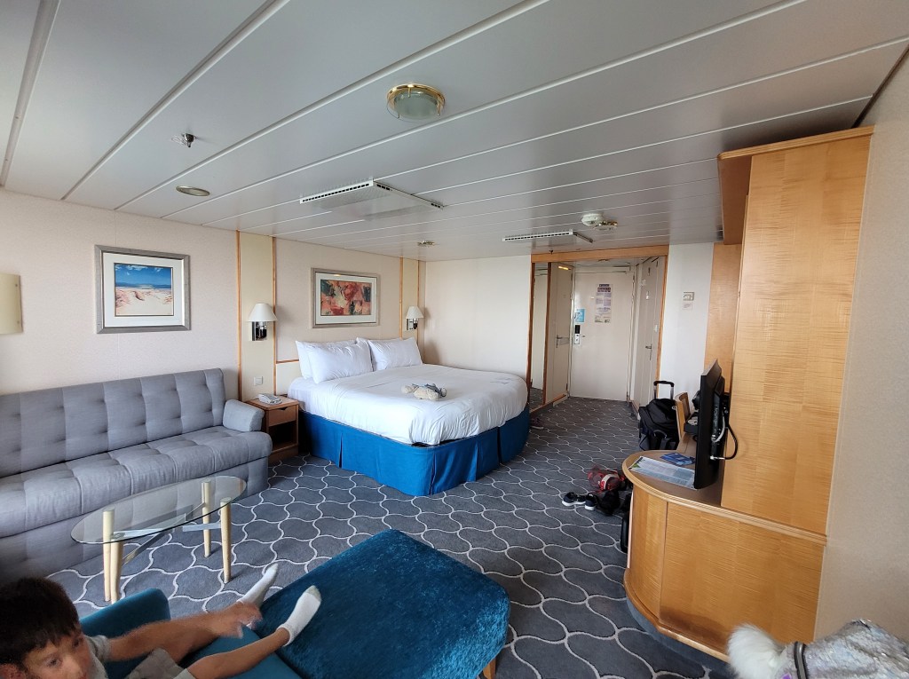 Our Junior Suite class room was roughly 1.5 times the size of a standard balcony stateroom. You don’t get all the suite-class amenities, but it’s a nice bridge, and what you do get is the double night credit to your Crown and Anchor account, so for this 3 night sailing we got 6 nights of loyalty credit.