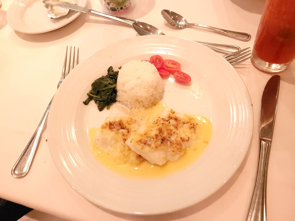 One of the things I love about cruising is the dining, it complete removes the stress of where to eat, or what to eat, as everyone just eats what they want. Sure, you can go to a specialty restaurant and pay extra, but the main dining room and buffet were both amazing places to fill up on. On top of that, the white fish on another night was great. The main dining room can also accommodate groups big and small, and getting 10 of us dining together was easy.