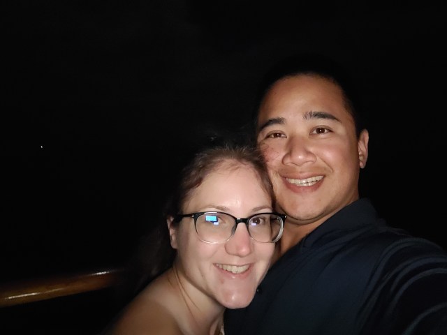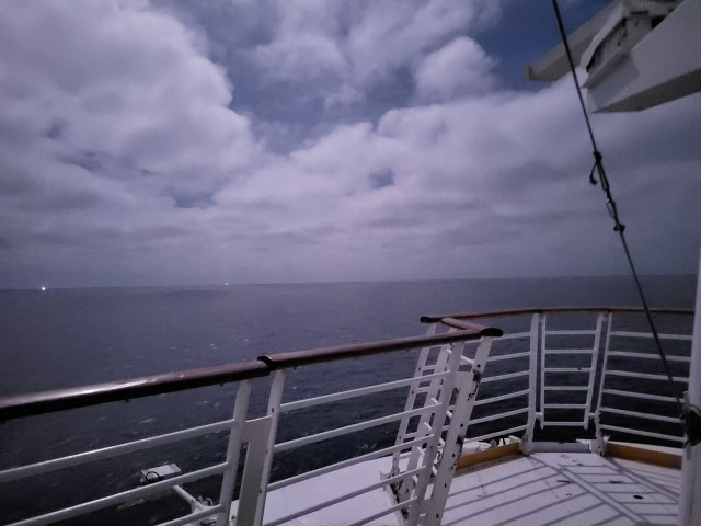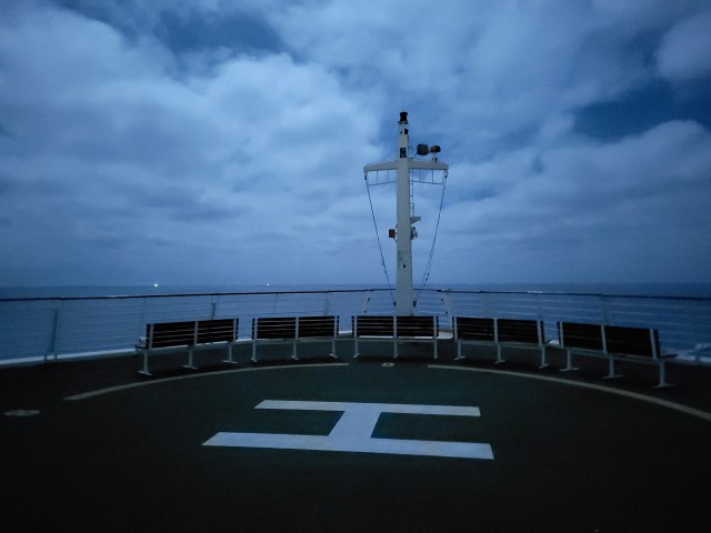 On an evening walk, Alyssa and I discovered on this ship, you can go to the front where the helipad is and have a nice, quiet hangout. You can also pull off the front of the ship pose like in the Titanic, without the risk of striking an iceberg a few days later. On that note, you’ll also be pleased to know all cruise ships have lifeboat capacity for all persons onboard plus space to spare these days.