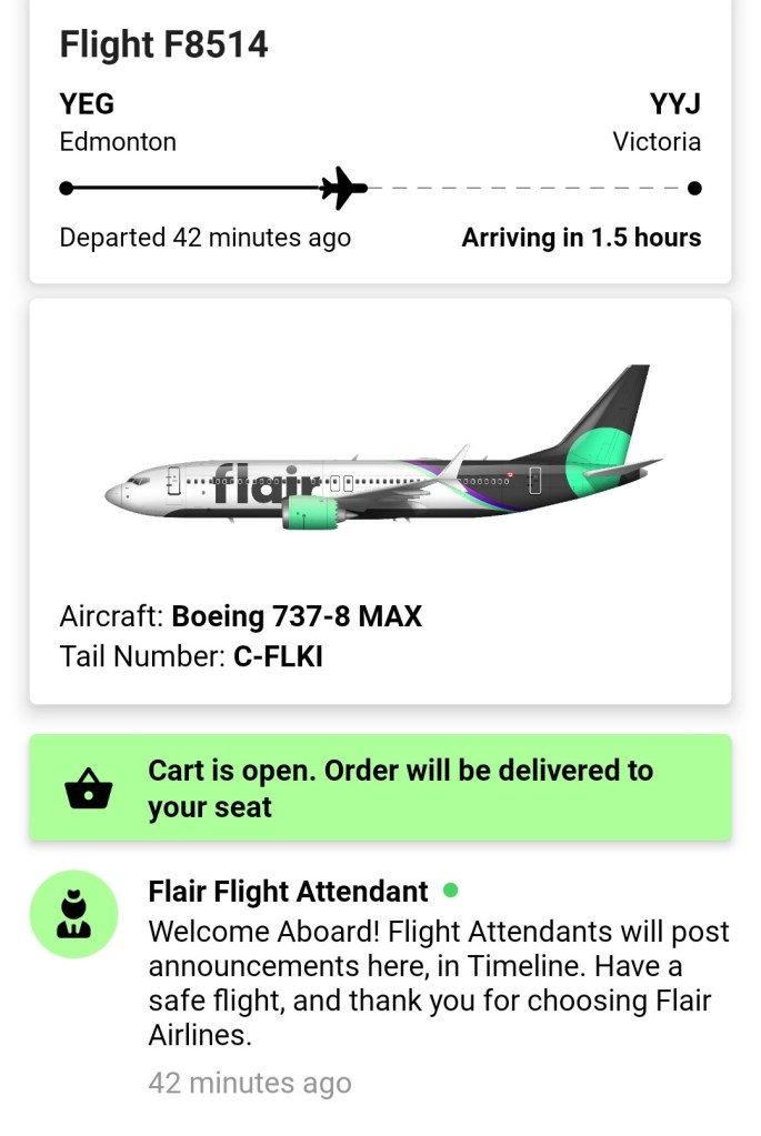 Everything on Flair is buy-on-board, not complaining, we knew, but be prepared and bring your own snacks and water or be ready to fork out some money for everything. Oddly, flying out of Victoria, we ended up settling for instant noodles and water, as they had run out of a lot of food onboard from the flight over from Ottawa.