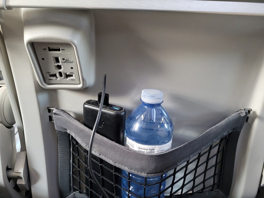WS’s app-based inflight entertainment works reasonably well, but I just personally prefer not being forced to use my own device for entertainment, especially given how much battery it uses. There are USB charging ports and shared 120v outlets, but they don’t always work well enough to keep a charge.