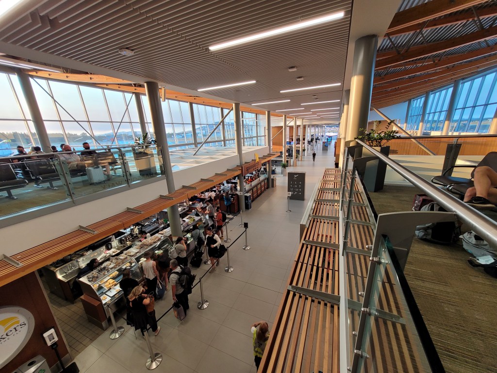 I won’t go into too much detail about our home airport of Victoria International (YYJ) as I’ve reviewed it on a number of occasions already. Arriving was smooth and easy, and we had bags dropped off and we were airside fairly quickly. One of the major drawbacks of our little airport though is that for evening flights after say 1700hrs, Tim Horton’s closes and your only option is the rather expensive Spinnakers airside.