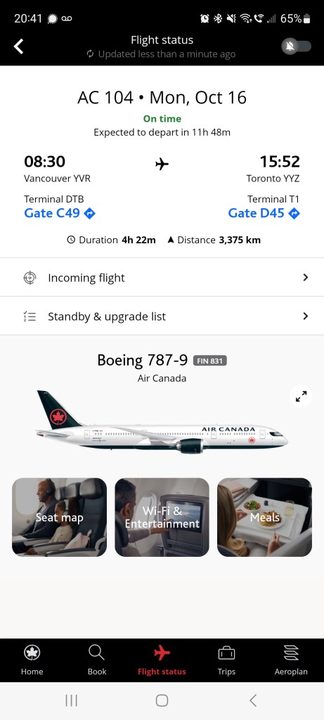 I do want to note, for all the complaints about Air Canada, their app is probably one of the best out there, and I have WestJet, Flair, Emirates, Turkish, Lufthansa, JetBlue, Qatar, and more on my phone. The functionality and features are really nice, and it helped make the online check in process smooth and easy, and nice provides the electronic boarding pass. I’m looking at you WestJet, why do I need to download each boarding pass individually when checking in on the app?